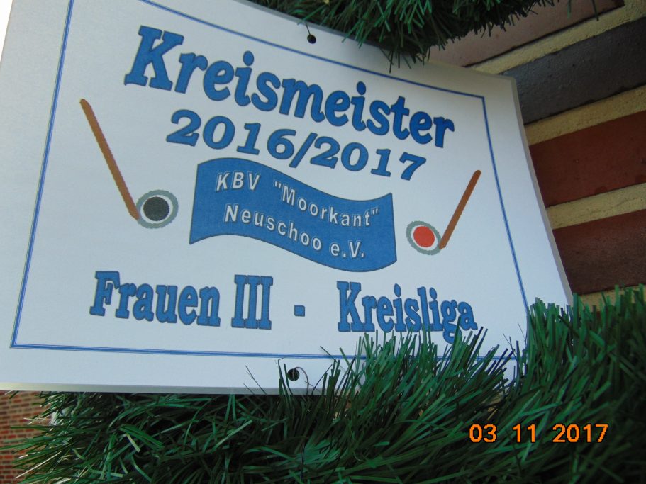 Unsere Frauen 4 sind in diesem Jahr in unserem Kreisverband Meister geworden. Unserer Frauen boßeln seit dieser Saison gegen die Frauen 4 Mannschaften aus dem Kreisverband Norden. Hier belegten sie den zweiten Platz und wurden somit Vizemeister.